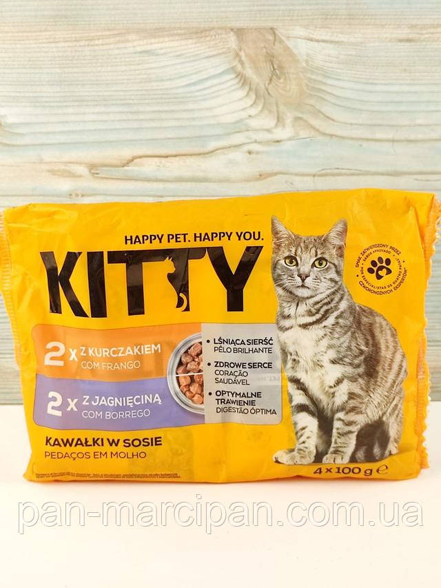 Вологий корм для кішок 2 смаки Kitty 4 шт. по 100 г Польща, фото 1